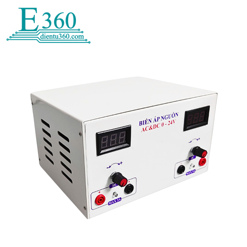 - Điện áp một chiều (3A): điều chỉnh từ 0 đến 24V, 36V. Có đồng hồ chỉ thị điện áp ra; có mạch đóng ngắt và bảo vệ quá dòng, đảm bảo an toàn về độ cách điện và độ bền điện trong quá trình sử dụng.