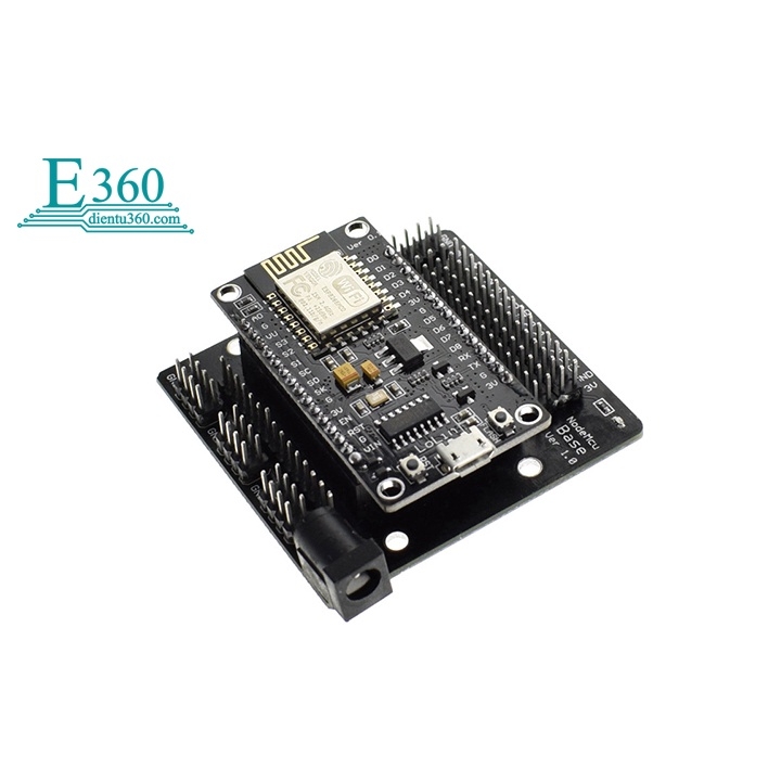 Đế ra chân ESP8266 NodeMCU Lua V3 CH340 được sử dụng với KIT NodeMCU LUA ESP8266 giúp ra các chân tín hiệu của Kit đi kèm hai chân VCC, GND giúp dễ dàng kết nối với các loại module, cảm biến, sensor, RC Servo,..., ngoài ra đế còn tích hợp mạch nguồn xung giúp cấp nguồn cho kit qua cổng Jack DC linh hoạt 6~24VDC.