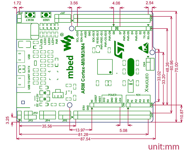 KÍCH THƯỚC KIT XNUCLEO-F302R8