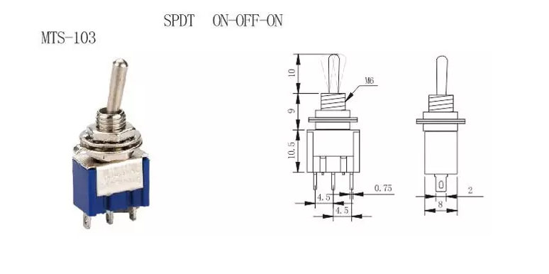 CÔNG TẮC GẠT MTS 103 3A/250V 6A/125V được sử dụng làm công tắc đảo chiều động cơ hoặc tắt mở 2 hay nhiều thiết bị cùng dòng.