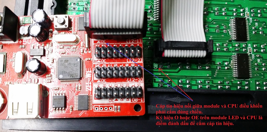 - Chú ý: Khi cắm cáp kết nối Module và CPU kéo theo đúng chiều như trong ảnh dưới