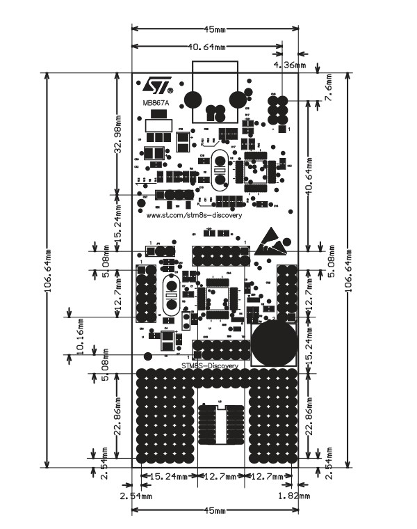 Kit STM8S Discovery, STM8S105C6T6 sử dụng MCU 8-bit giúp các bạn khai thác đầy đủ các tính năng của tất cả các dòng MCU STM8S và phát triển các ứng dụng của mình trên kit STM8S.
