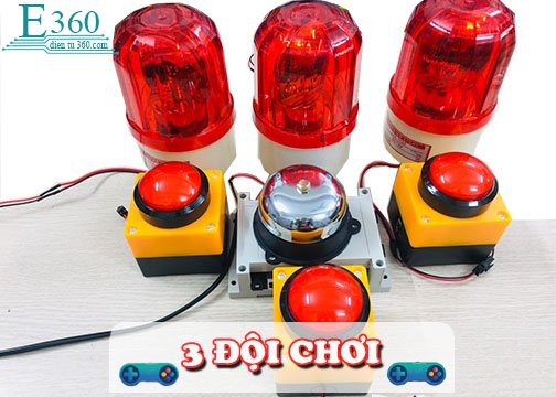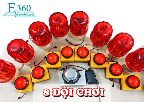 + Có thể sử dụng tối đa 8 đội chơi. Mỗi đội chơi sẽ có 1 đèn xoay và 1 nút bấm.