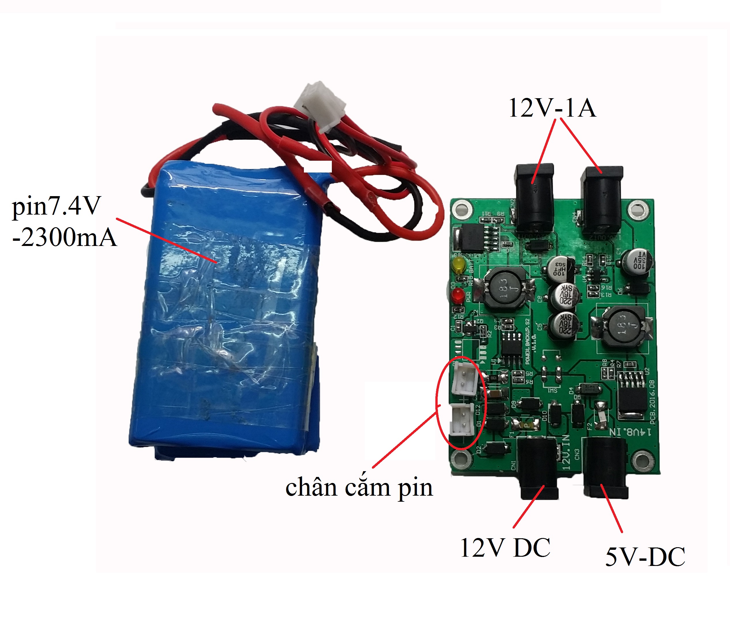 Mạch còn tích hợp 2 pin 7.4V 2300mA giúp duy trì nguồn khi mất điện trong một khoảng thời gian với phiên bản 1 pin chỉ được sạc khi ta cấp nguồn 12V mạch cũng có chức năng tự ngắt khi pin đầy. Mạch tích hợp nhỏ gọn dễ sử dụng.