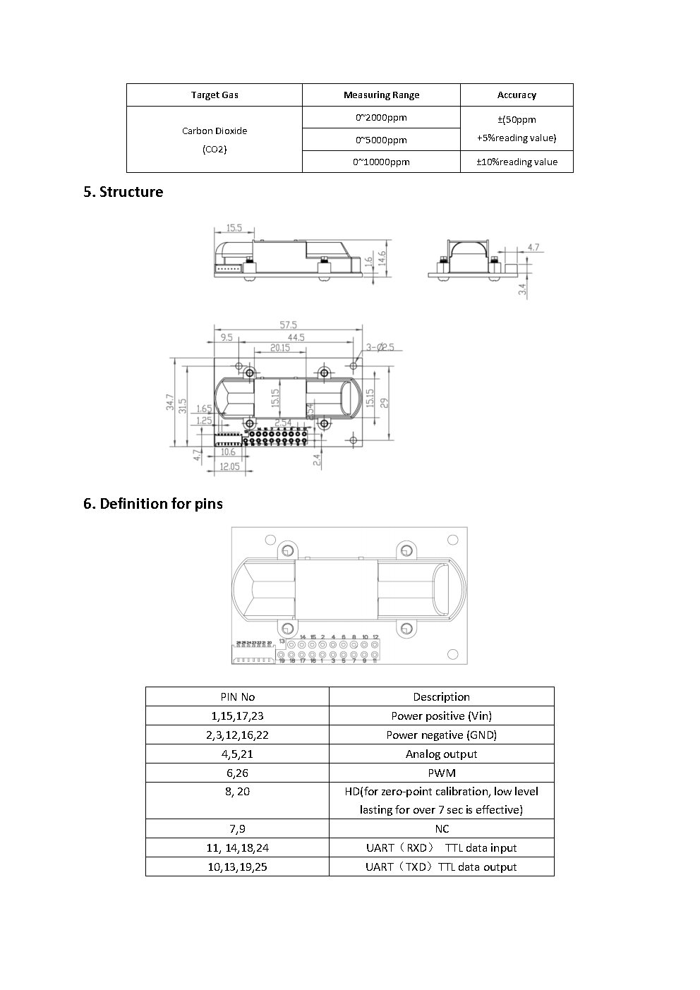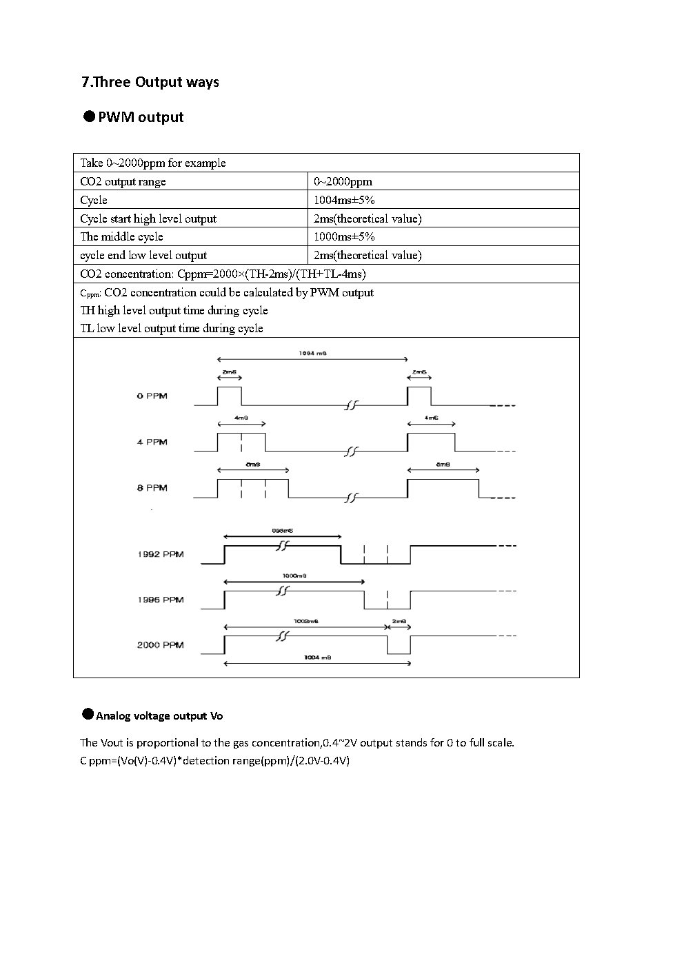 6. tín hiệu đầu ra: 0.4 ~ 2 V DC, UART, PWM