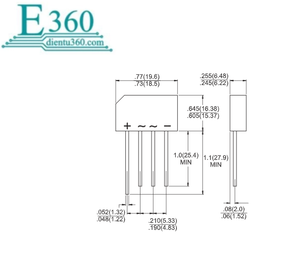 CẦU DIODE KBL410 4A 1000V là một linh kiện điện tử được cấu tạo từ 2 lớp bán dẫn tiếp xúc với nhau. Diode có 2 cực Anode và Cathode. Nó chỉ cho dòng điện đi theo 1 chiều từ Anode sang Cathode ( Chính xác là khả năng cản trở dòng điện theo chiều AK là rất nhỏ, còn KA là rất lớn). Diode Cầu 4A 1000V KBL410 là diode cầu 1A có tác dụng chỉnh lưu dòng điện xoay chiều thành dòng điện một chiều. Ngoài ra còn có Diode cầu 4A 600V KBL406.