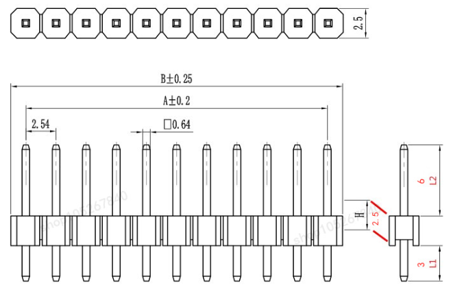 - Tiết diện : vuông 0,64 ± 0.05mm