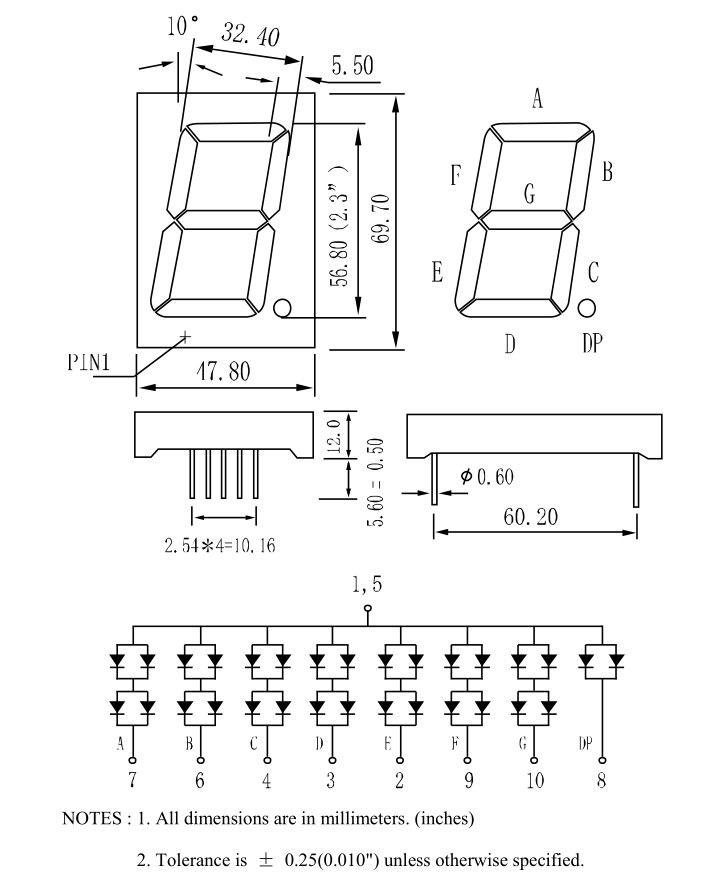 Led 7 thanh 2.3inch (1 số, Anot chung, sáng đỏ)