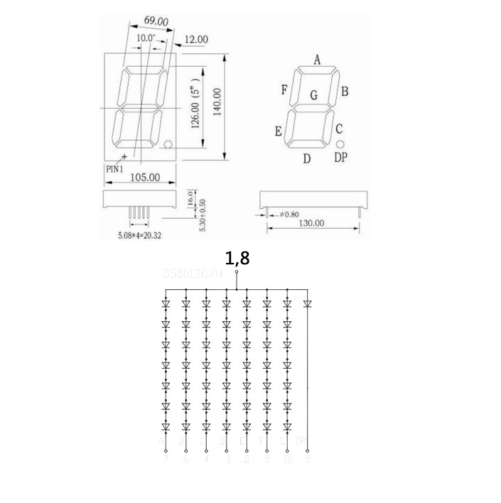 Led 7 thanh 5inch (1 số, Anot chung, sáng đỏ)