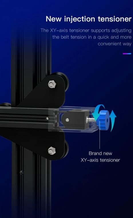 Cơ cấu căng đai thông minh cho trục X, Y, giúp người dùng dễ dàng hiệu chỉnh độ căng của dây đai để máy hoạt động tốt nhất, chính xác nhất