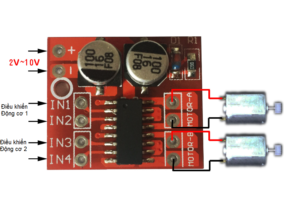 Mô-đun điều khiển động cơ rất phù hợp để sử dụng trên ô tô thông minh chạy bằng pin, ô tô đồ chơi, rô-bốt, v.v. Điện áp nguồn là 2V ~ 10V, và nó có thể điều khiển hai động cơ DC hoặc 2 pha 4 dây động cơ bước cùng một lúc, có thể thực hiện các chức năng Tiến và lùi và điều chỉnh tốc độ, mỗi dòng điện có thể đạt dòng liên tục 1,5A , dòng điện cực đại có thể đạt 2,5A , có bảo vệ nhiệt và tự động phục hồi.