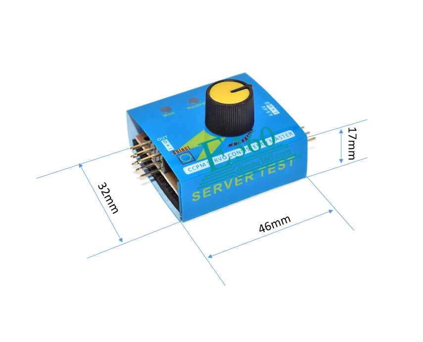 Thiết bị test servo ESC hay mạch test Servo được dùng để kiểm tra servo trước khi lắp đặt vào các hệ thống điều khiển để tránh tình trạng servo có lỗi. Mạch được tích hợp nhỏ gọn dễ sử dụng. Chỉ cần cắm Servo và cắm nguồn vào là có thể test được. Mạch có sẵn 3 chương trình để test như: quay servo bằng biến trở, chế độ tự động chạy xoay vòng, chế độ giữ cứng động cơ.